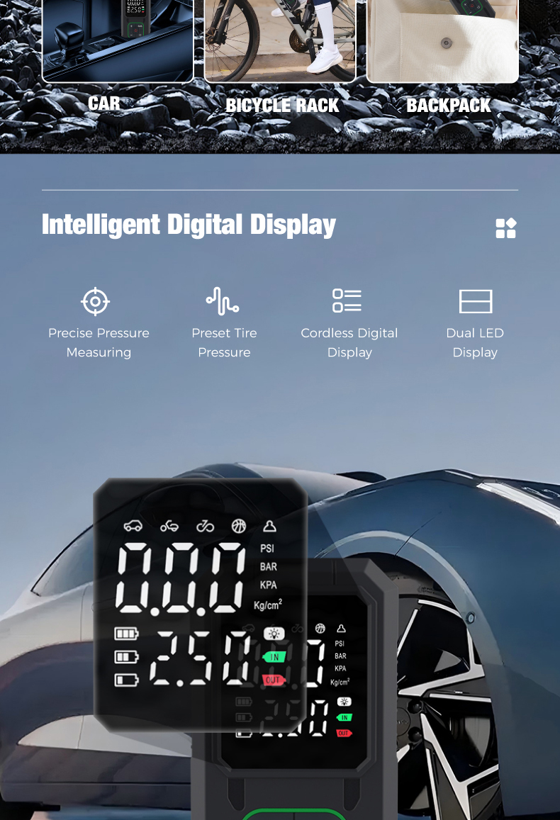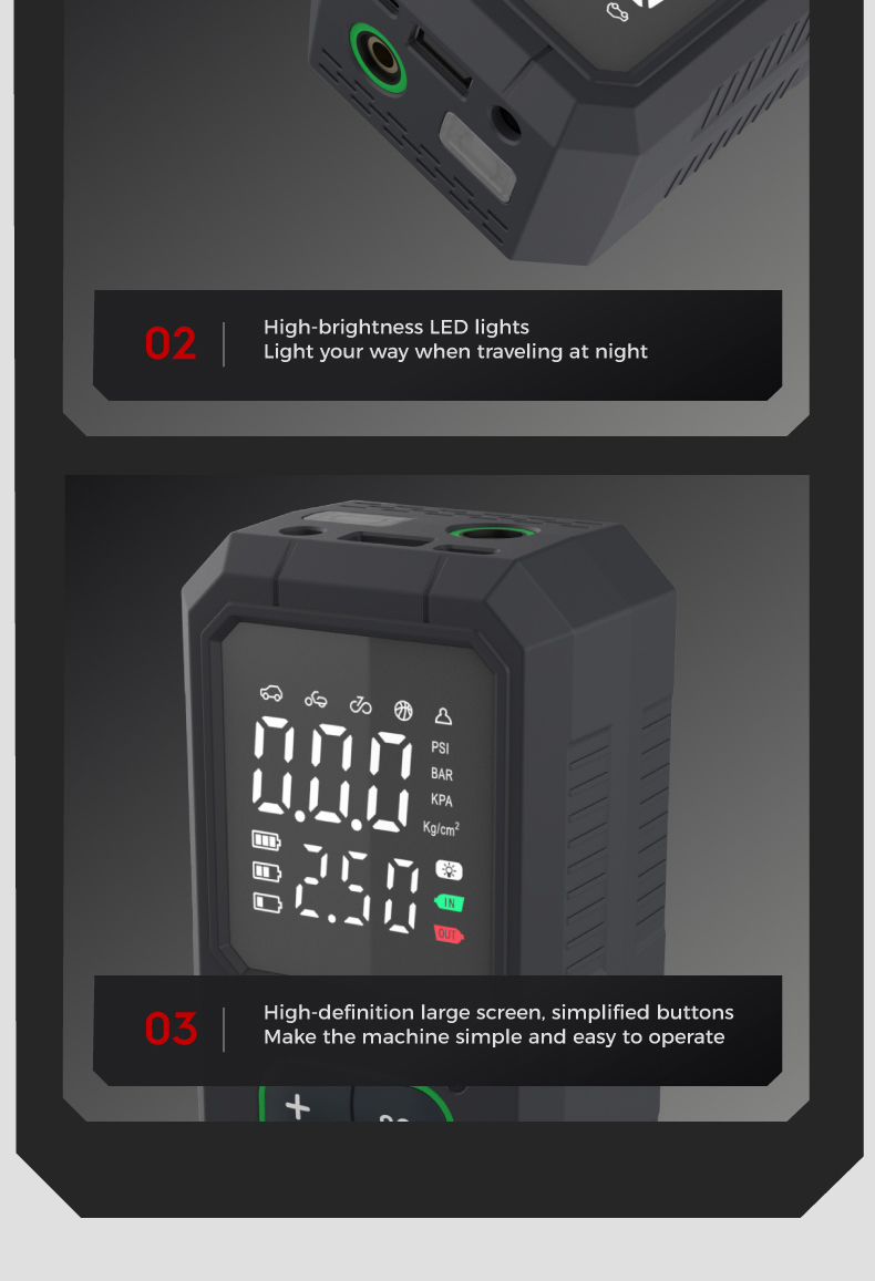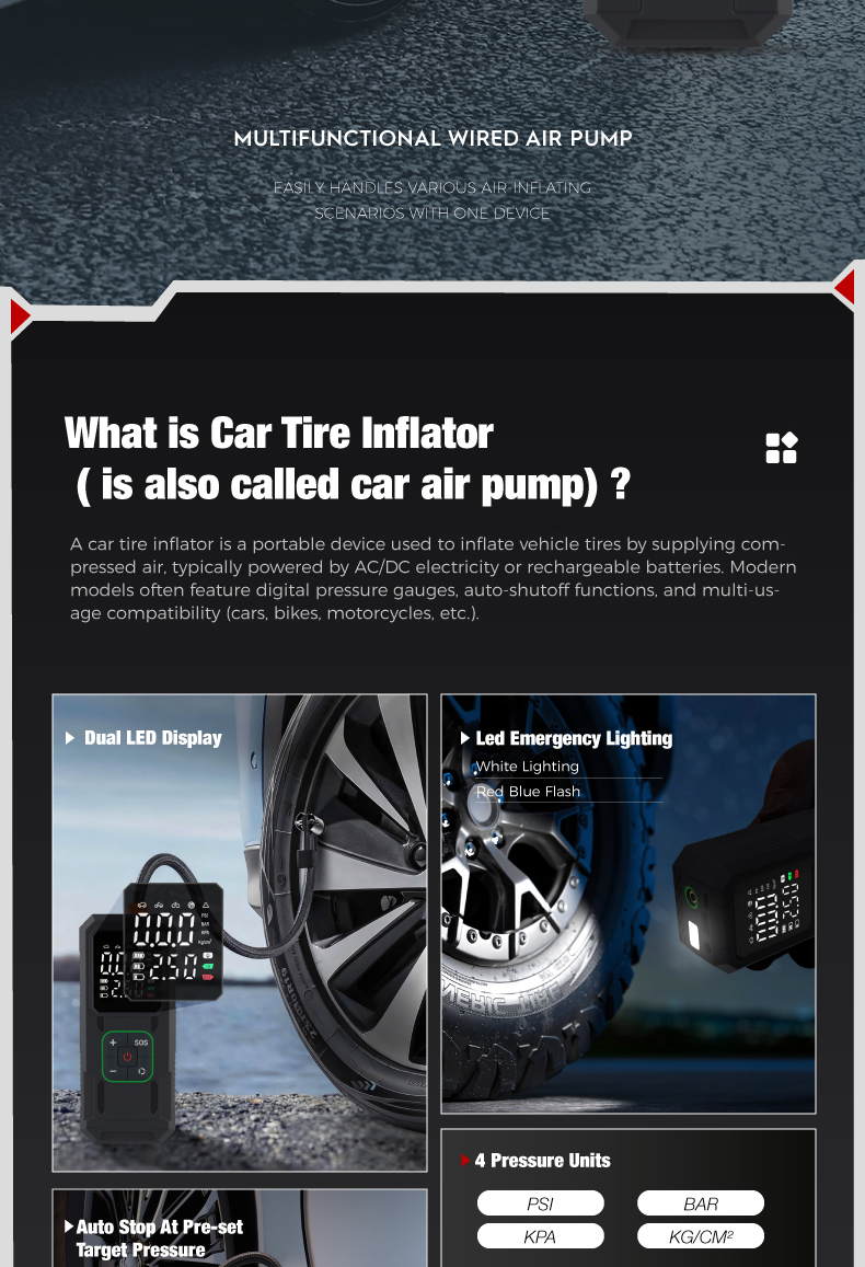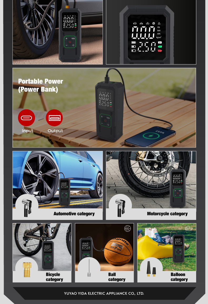 Tire inflator'1,29.5cm air hose*1,air nozzle*1,french adapter*1, ball needle*1,air