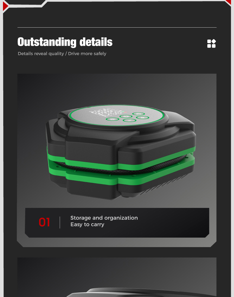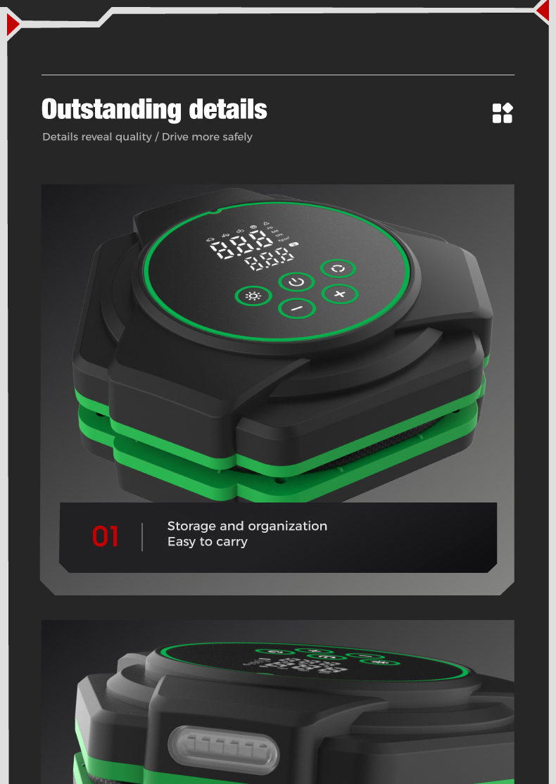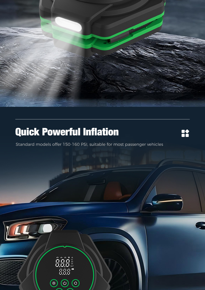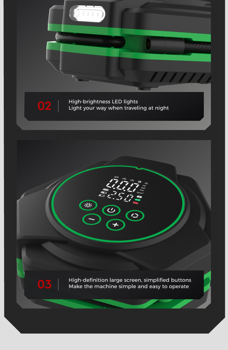 Tire inflator*1, 50cm air hose*1, air nozzle*1, french adapter*1, ball needle*1air cushion nozzle*1,3m cigarette lighter plug cable*1,fuse*1