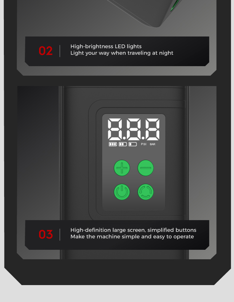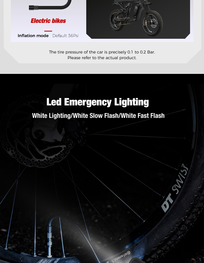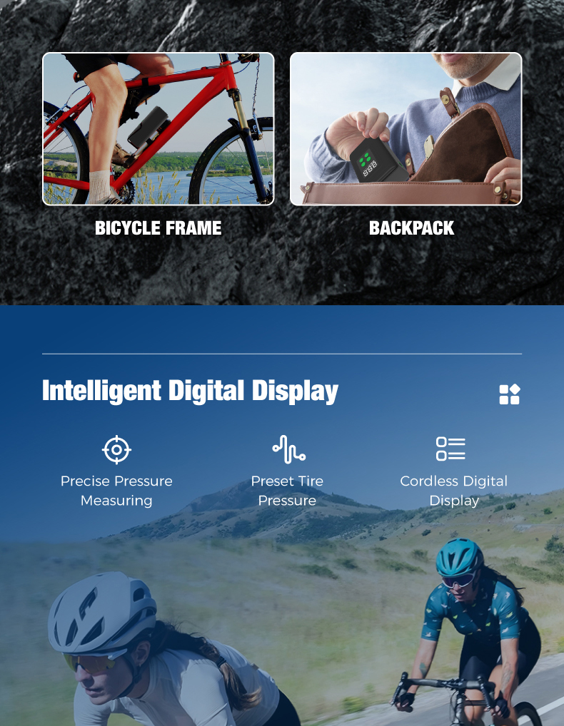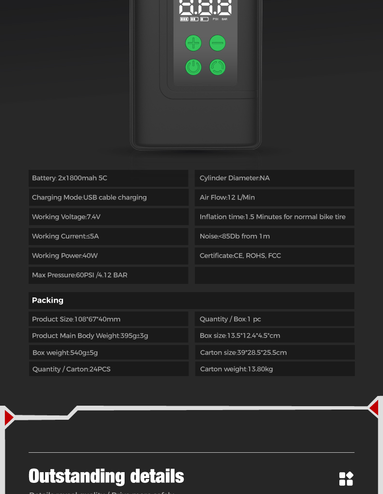 bike inflator*1, 20cm air hose*1, air nozzle*1, ball needle*1, air cushion nozzle*1 quick-connected nozzle*1, 0.5m usb charging cable*1.