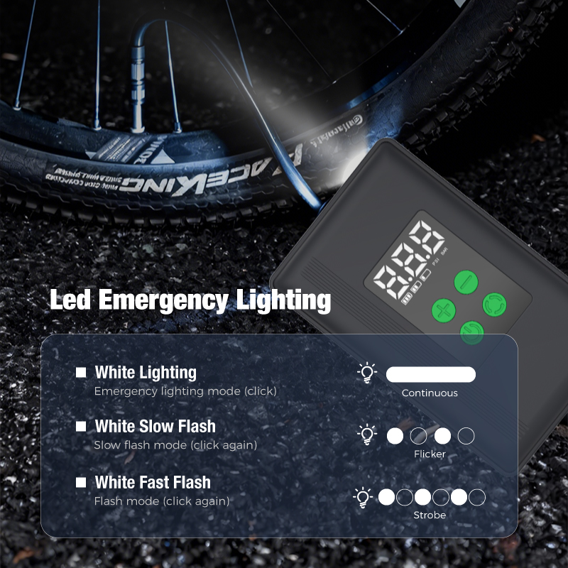Bike inflator*1, 20cm air hose*1, air nozzle*l, ball needle*l, air cushion nozzle*1